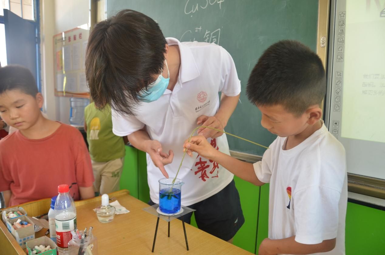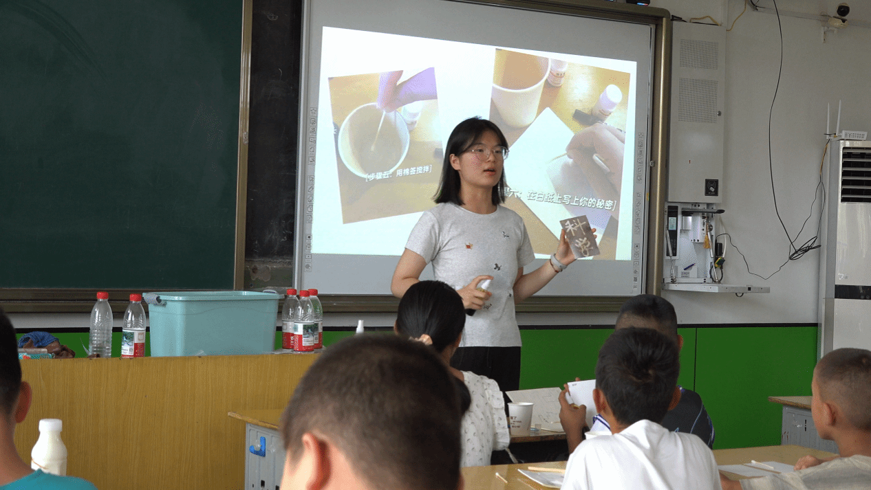 “大家猜猜看,用普通的画笔和特殊的‘墨水’,能在纸上写出看不见的字吗?”支教队员的问题瞬间点燃了孩子们的好奇心。在神奇的隐形墨水实验课上,队员们为孩子们准备了维生素C片、碘伏溶液、画笔、白卡纸和杯子等实验材料,并贴上标签,反复强调安全注意事项,确保实验在安全有序的环境中进行。孩子们按照步骤,用维生素C溶液在白卡纸上写下心中的秘密,待溶液干燥后,字迹便消失得无影无踪。接着,当他们用碘伏溶液轻轻涂抹在纸上时,神奇的一幕出现了:原本空白的纸上逐渐显现出棕色的字迹。孩子们惊叹不已,纷纷围在一起讨论其中的原理。通过这个实验,孩子们直观地感受到了化学反应的神奇,对化学科学产生了浓厚的兴趣。