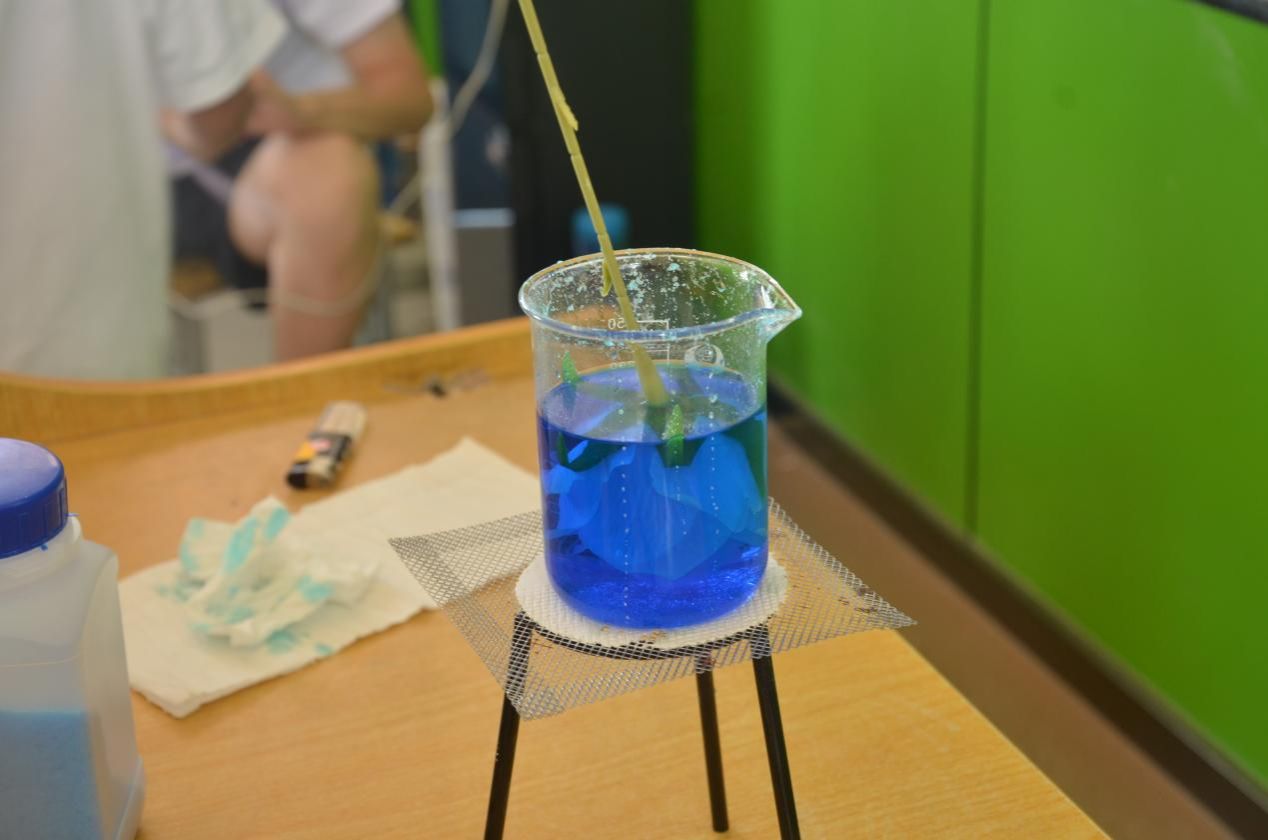 在硫酸铜晶体玫瑰制作课堂上,科学与艺术的完美融合让孩子们惊叹连连。支教队员先向孩子们介绍了硫酸铜晶体的形成原理和生长过程,让他们了解到看似普通的化学物质在特定条件下能创造出令人惊叹的美。随后,孩子们在队员的指导下,小心翼翼地将硫酸铜晶体溶液倒入特制的模具中,经过一段时间的耐心等待,一朵朵晶莹剔透、宛如蓝宝石般的硫酸铜晶体玫瑰逐渐成型。当孩子们手捧着自己亲手制作的晶体玫瑰时,眼中满是喜悦和自豪。这一课程不仅让孩子们体验到了科学实验的乐趣,更培养了他们的耐心和细心,让他们明白,只要用心去探索和实践,就能创造出美好的事物。