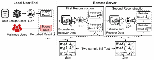 该论文主要针对本地化差分隐私(LDP)协议的鲁棒性和安全性展开研究。近年来,LDP技术已经成为了无可信中心的分布式环境中标准的隐私数据采集分析技术之一。LDP要求用户上传隐私敏感数据之前在本地对数据进行扰动,然后服务器通过扰动结果来分析用户数据的统计特征。然而,LDP协议中存在一个固有的缺陷。由于LDP协议中数据扰动部分部署在用户本地,恶意用户可以篡改扰动结果并精心构造投毒数据上传给服务器,以此来影响最终的数据统计结果。