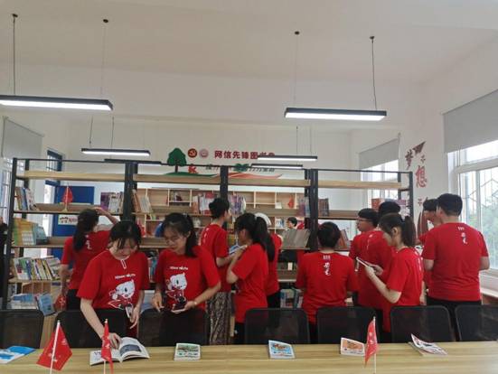 介绍完本次社会实践的行程安排后,举行了“情系孝通,书香传爱”图书捐赠仪式。张美茹书记代表西电网信院向孝通小学捐赠图书。