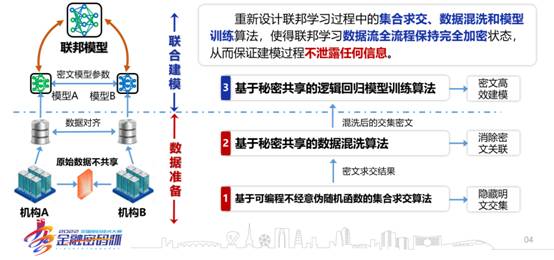 联邦学习等技术的出现,为破解数据共享与隐私保护需求难平衡的难题带来了可能性,但就数据合规角度而言,即使多方机构之间进行“数据不出域”,“数据不动、模型动”的联合建模,也依然存在合规风险。本作品区别于当前通用的联邦建模,使用不暴露交集的特征对齐、数据混洗融合技术,再进行密态逻辑回归模型训练,解决了目前隐私计算方案中普遍存在的“缺少个人授权”、“ID泄漏”等法律风险,让机构之间的数据要素价值流通真正合规可信。在各个需要联邦建模的领域,如联合风控、精准营销、普惠金融等方面,具有广泛的应用前景。