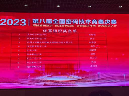 (通讯员:卞要锐 盖乐 张宁)2023年11月25日,第八届全国密码技术竞赛决赛在新疆乌鲁木齐顺利落幕,西电学子再获佳绩,共获一等奖3项,二等奖3项,三等奖4项,同时获得优秀组织奖,获奖情况在全国高校中位居前列。