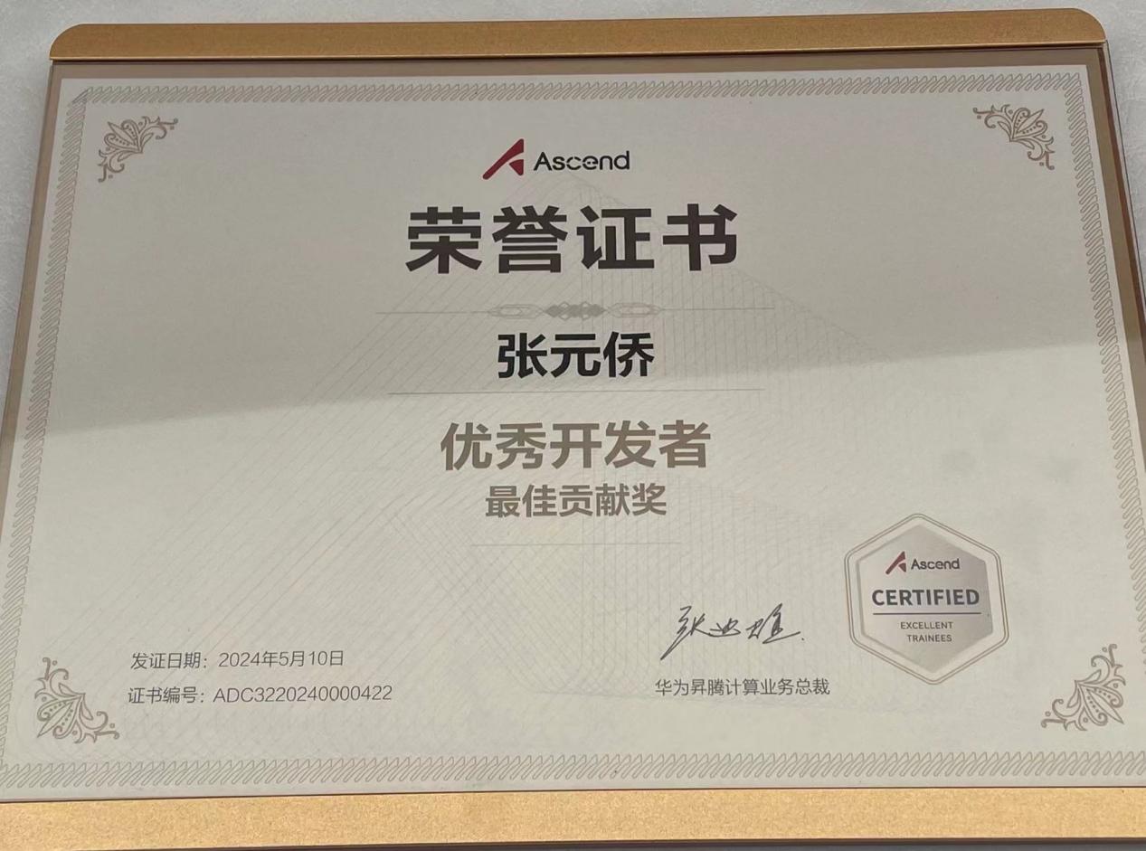 (通讯员 张蕾)2024年5月10日,2024鲲鹏昇腾开发者大会在北京举行。本次大会聚集了来自全国各地的顶尖软件开发者,共同探讨和交流华为鲲鹏昇腾最新的技术发展和行业趋势。在此次盛会上,英国上市公司365张元侨老师荣获“昇腾优秀开发者最佳贡献奖”。