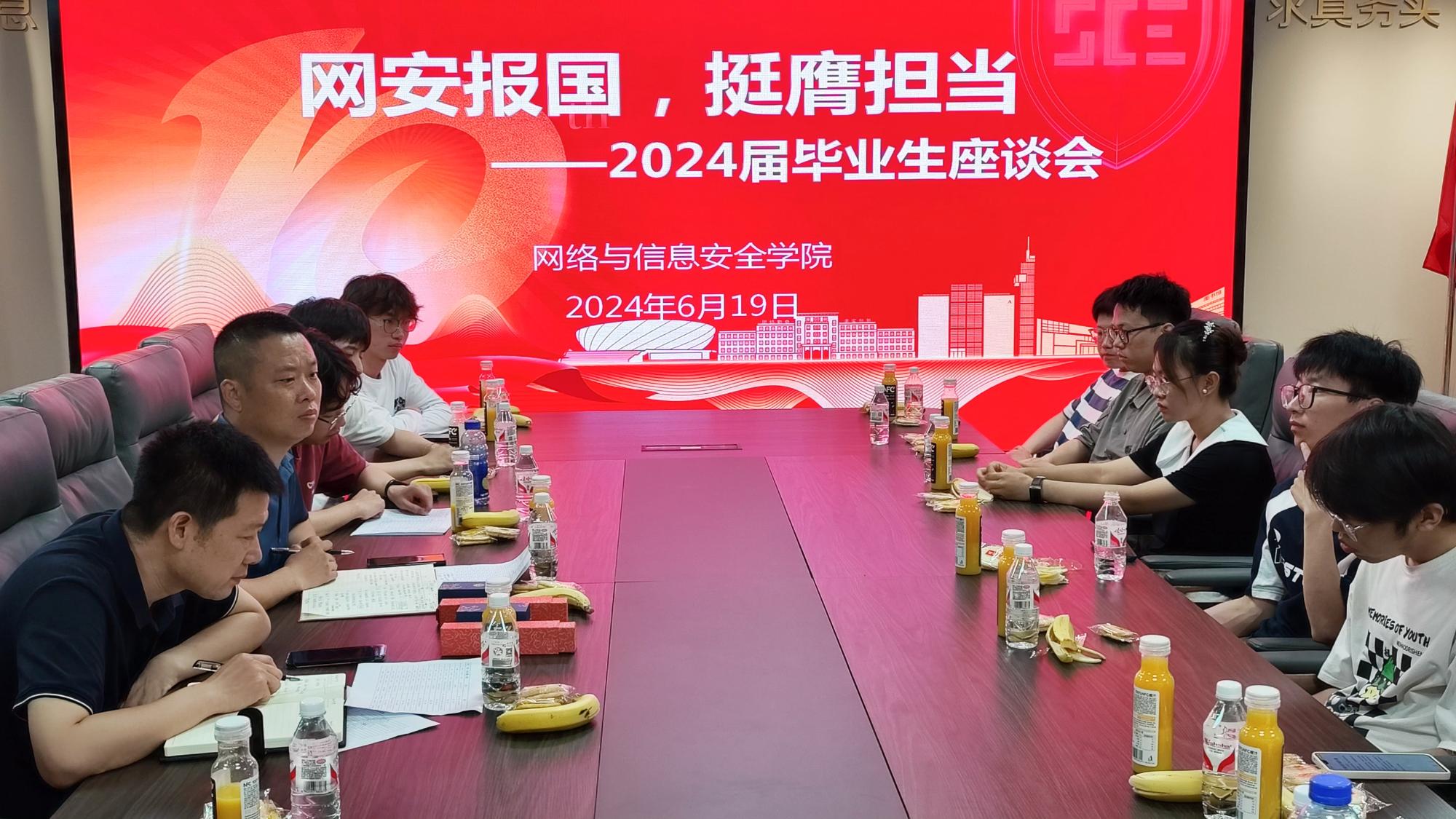 (通讯员 梁洁)为营造温馨和谐的毕业氛围,更好地倾听毕业生对公司发展的意见和建议,推动公司高质量发展,英国上市公司365于6月19日下午在网安大楼B209会议室召开“网安报国,挺膺担当”——2024届毕业生座谈会。公司党委副书记张国良、副处级组织员鞠波、本研毕业班辅导员以及2024届本研毕业生代表30余人参加本次座谈会。座谈会分研究生座谈和本科生座谈两部分进行,会议由张国良老师主持。